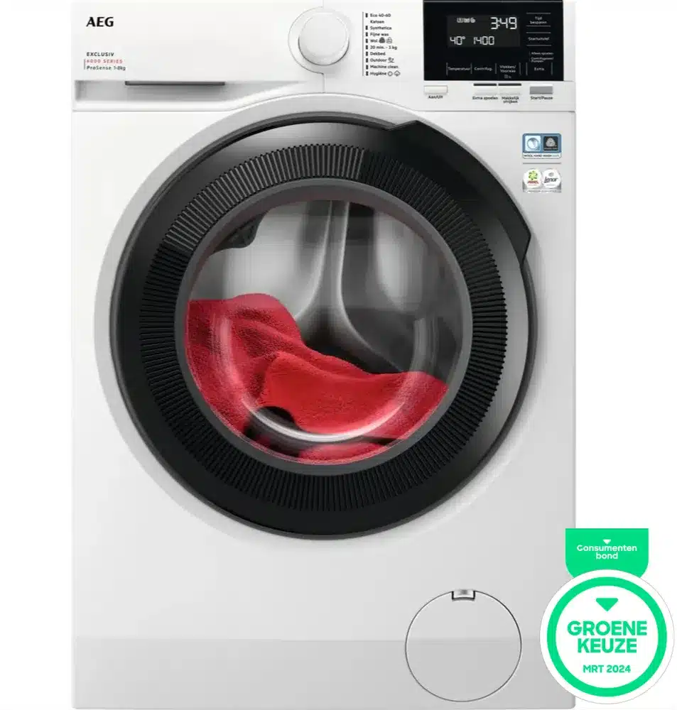De LR6KOLN ProSense wasmachine van AEG heeft een vulgewicht van 8 kg. De wasmachine centrifugeert de was met een snelheid van 1400 toeren en heeft energieklasse A.