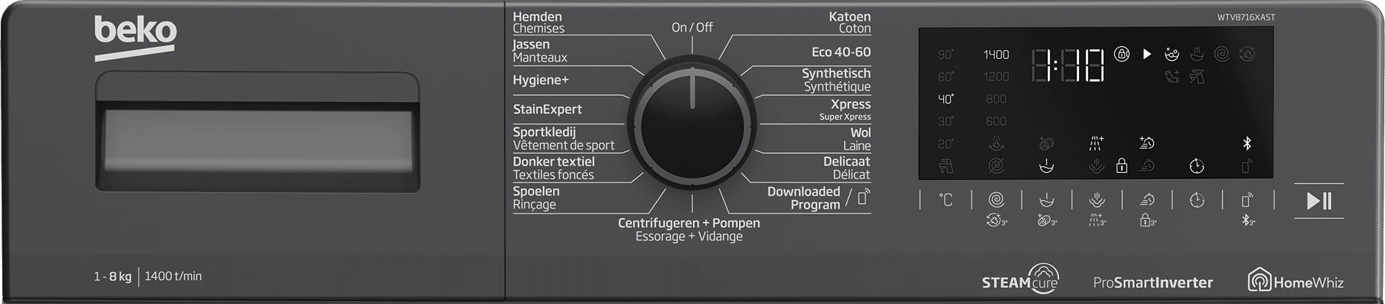 De WTV8716XAST wasmachine van Beko heeft een vulgewicht van 8 kg. De wasmachine centrifugeert de was met een snelheid van 1400 toeren en heeft energieklasse A.